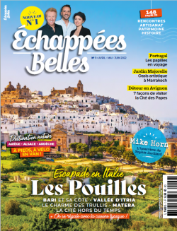 La revue, qui offre de nombreuses fenêtres d’évasions et d’informations, est partie faire le tour du monde des villes thermales. Enfin, Échappées Belles se compose de deux principaux dossiers autour desquels s’articulent de nombreuses rubriques dédiées au patrimoine, à l’artisanat, à la gastronomie, à la nature. C’est parti pour de nouvelles échappées !